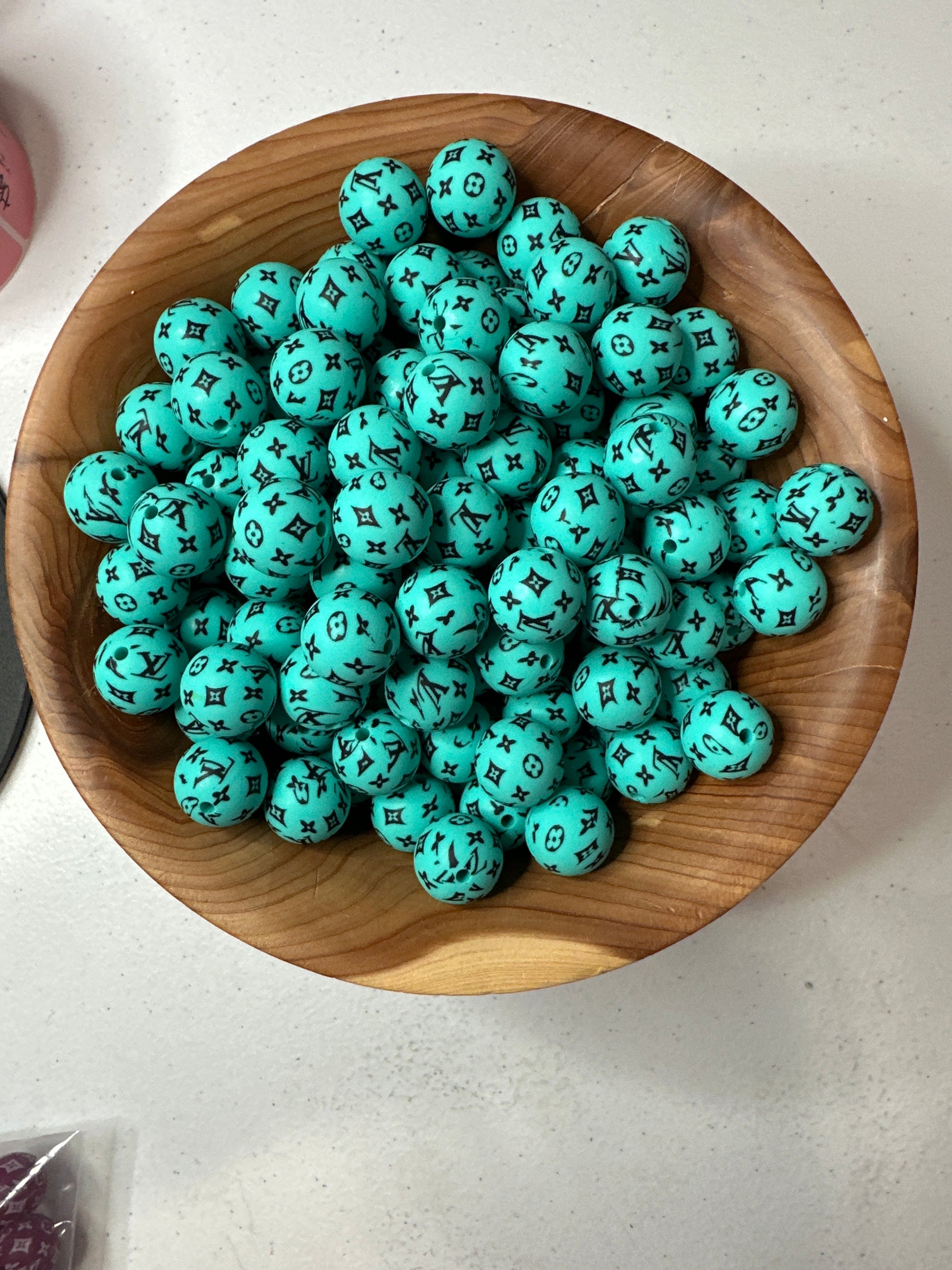 #231 Pattern Silicone Bead 15MM - LV Tiffany Blue Dark