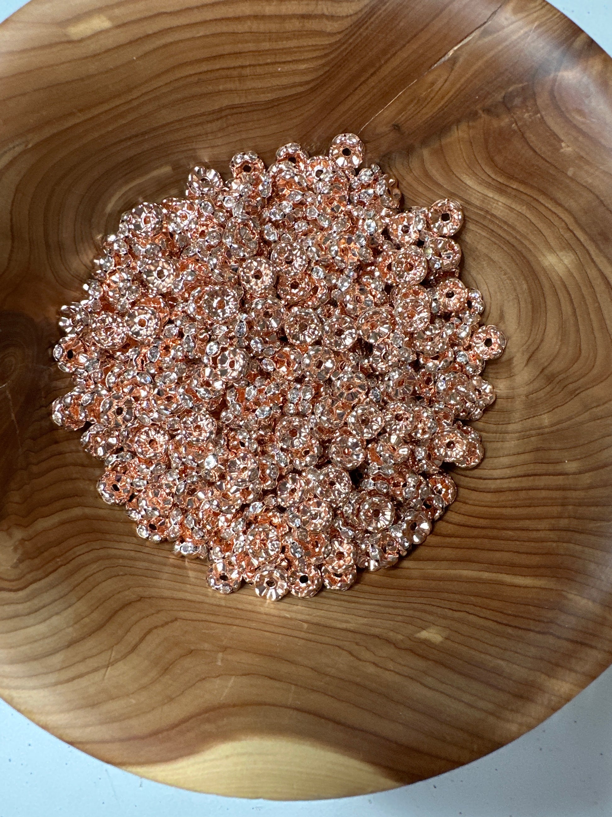 #211 Spacers 8MM - Rose Gold Rhinestone