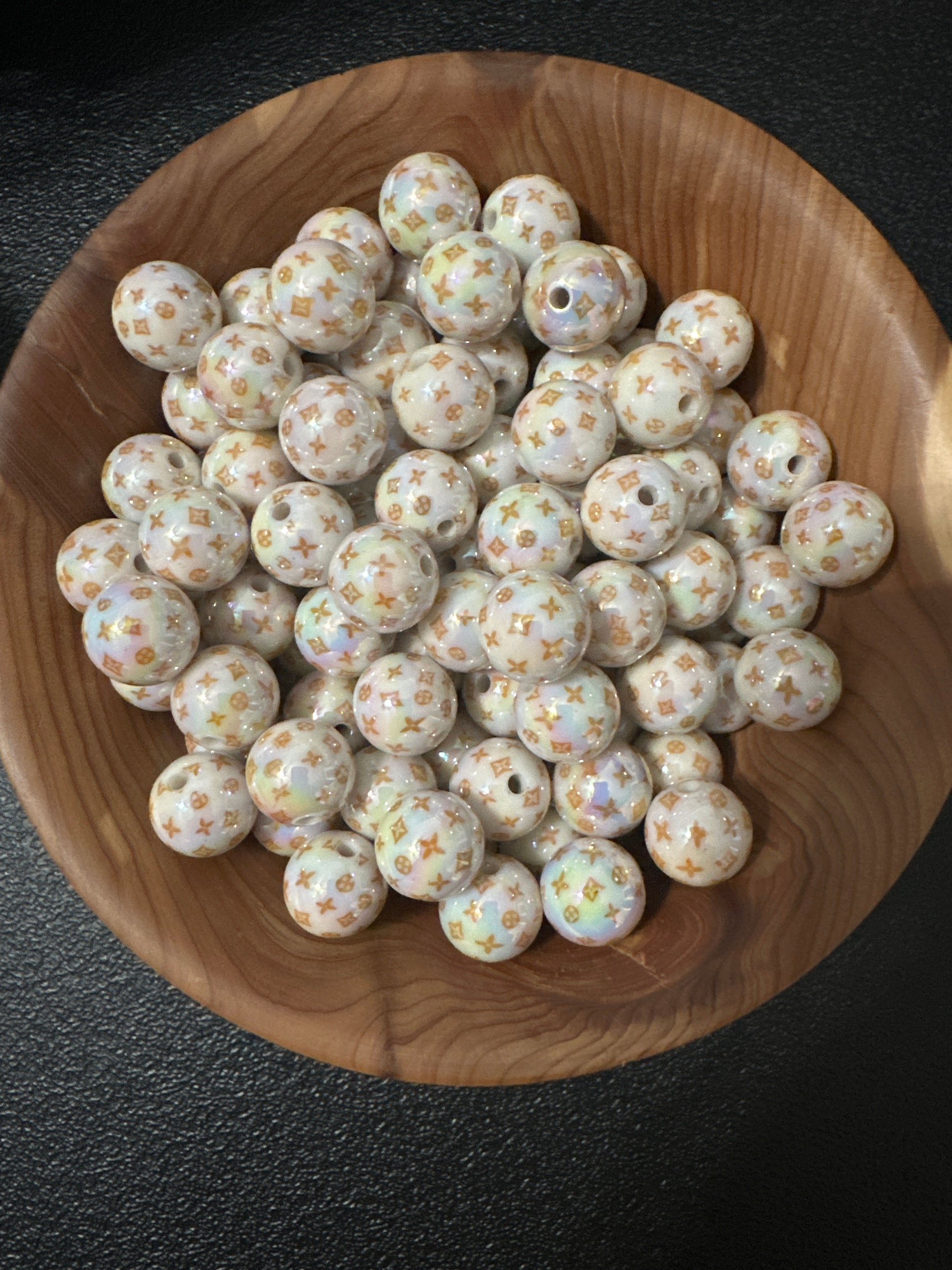 #240 Acrylic Bead 15MM - LV White Brown Iridescent