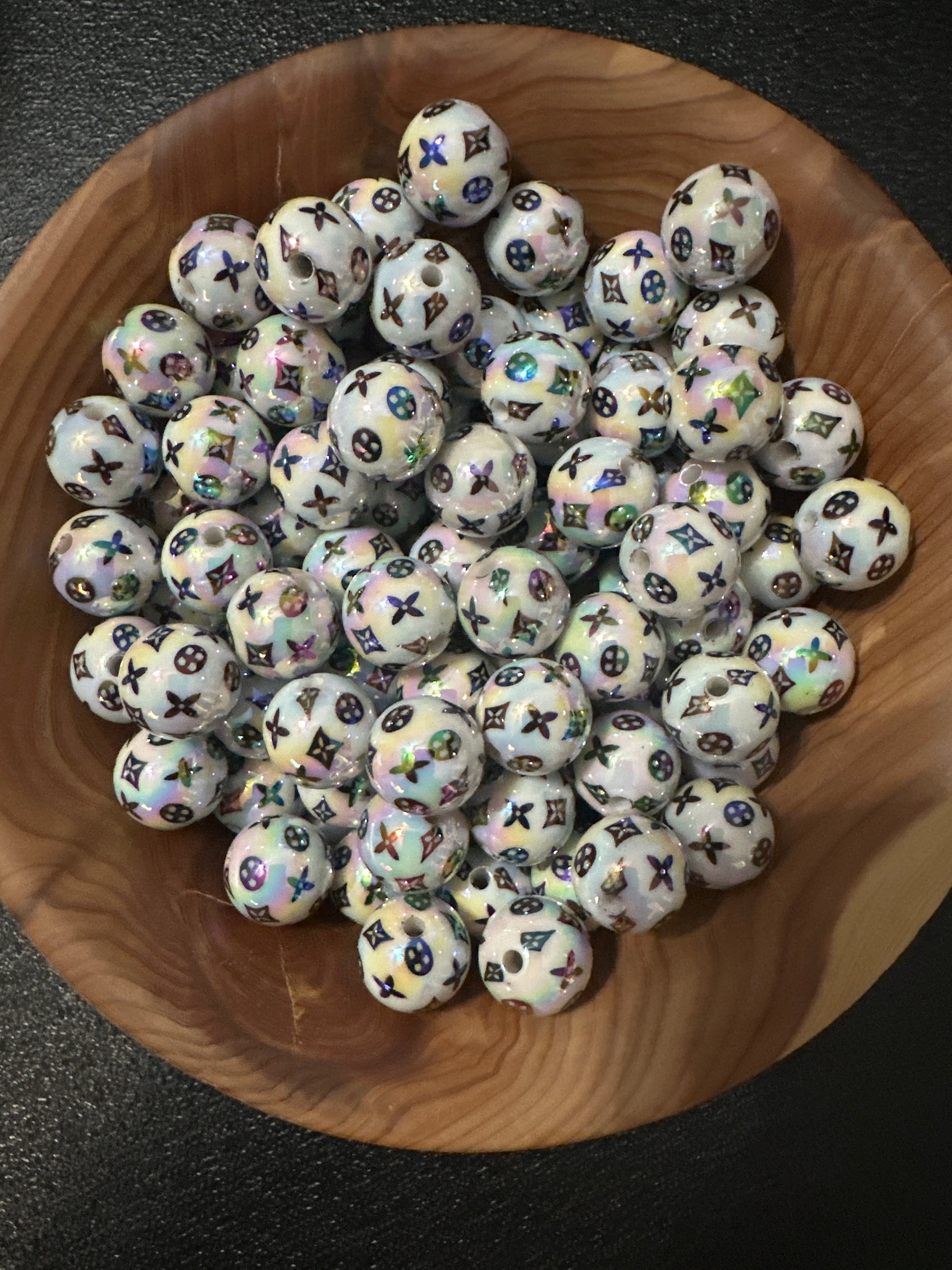 #243 Acrylic Bead 15MM - LV WHITE & BLACK IRIDENSCENT