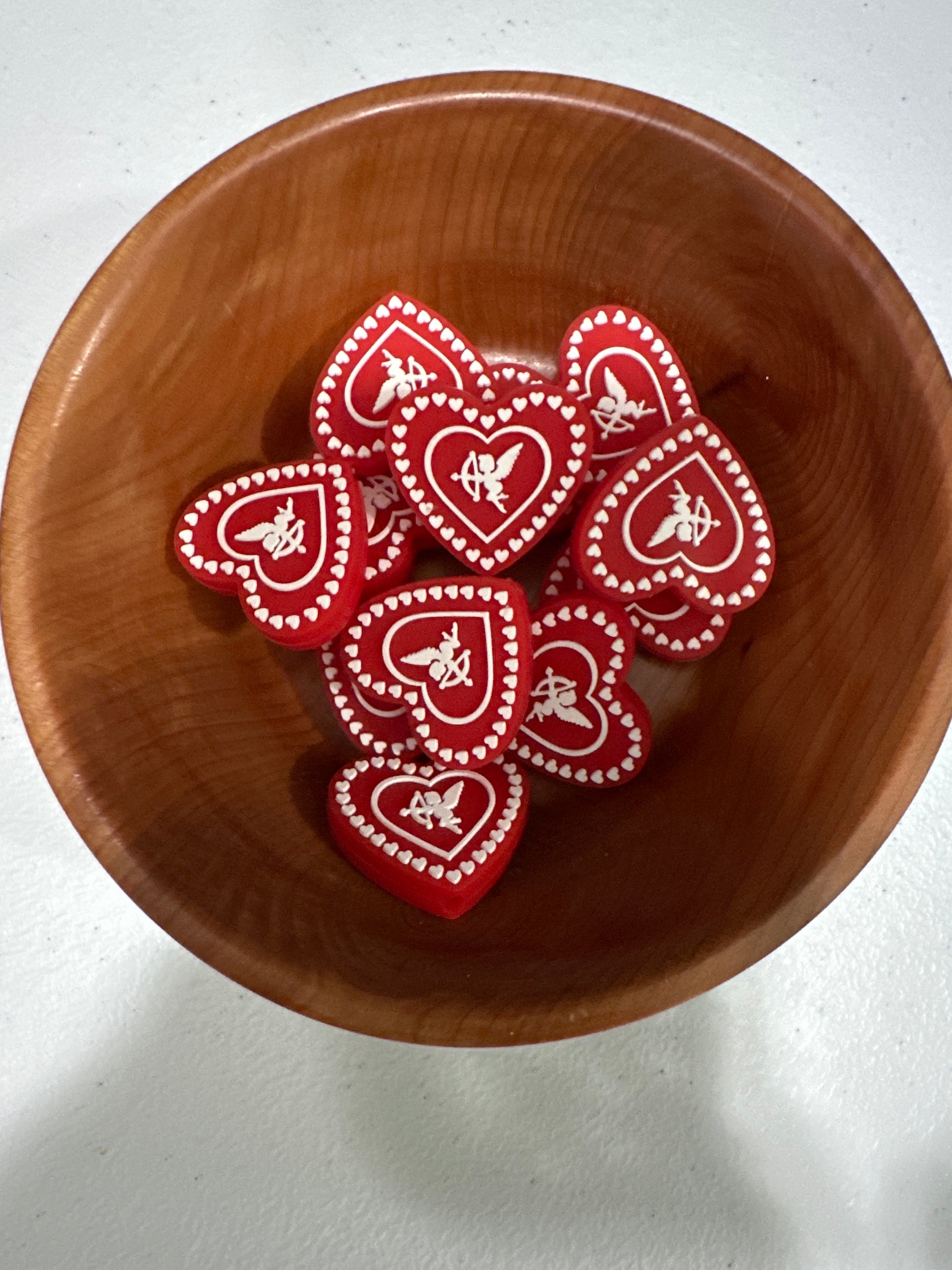 #249 Silicone Focal Beads - CUPID HEART RED