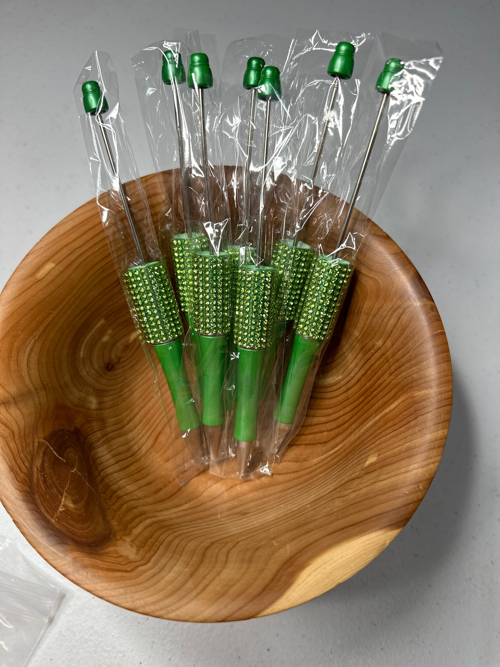 These pens have a twist-to-open base with a ballpoint tip. The writing is smooth like butter. They are available in variety colors. Each base comes with one ink insert, and additional ink inserts can be purchase from us.