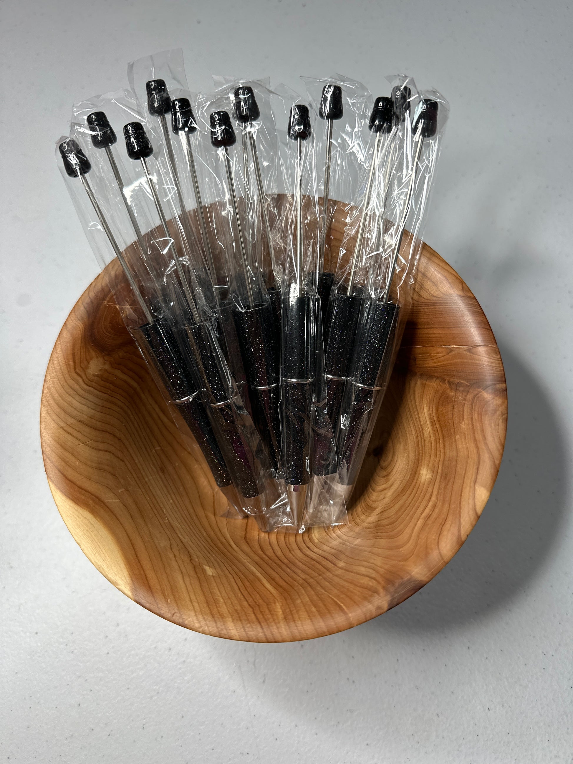 These pens have a twist-to-open base with a ballpoint tip. The writing is smooth like butter. They are available in variety colors. Each base comes with one ink insert, and additional ink inserts can be purchase from us.