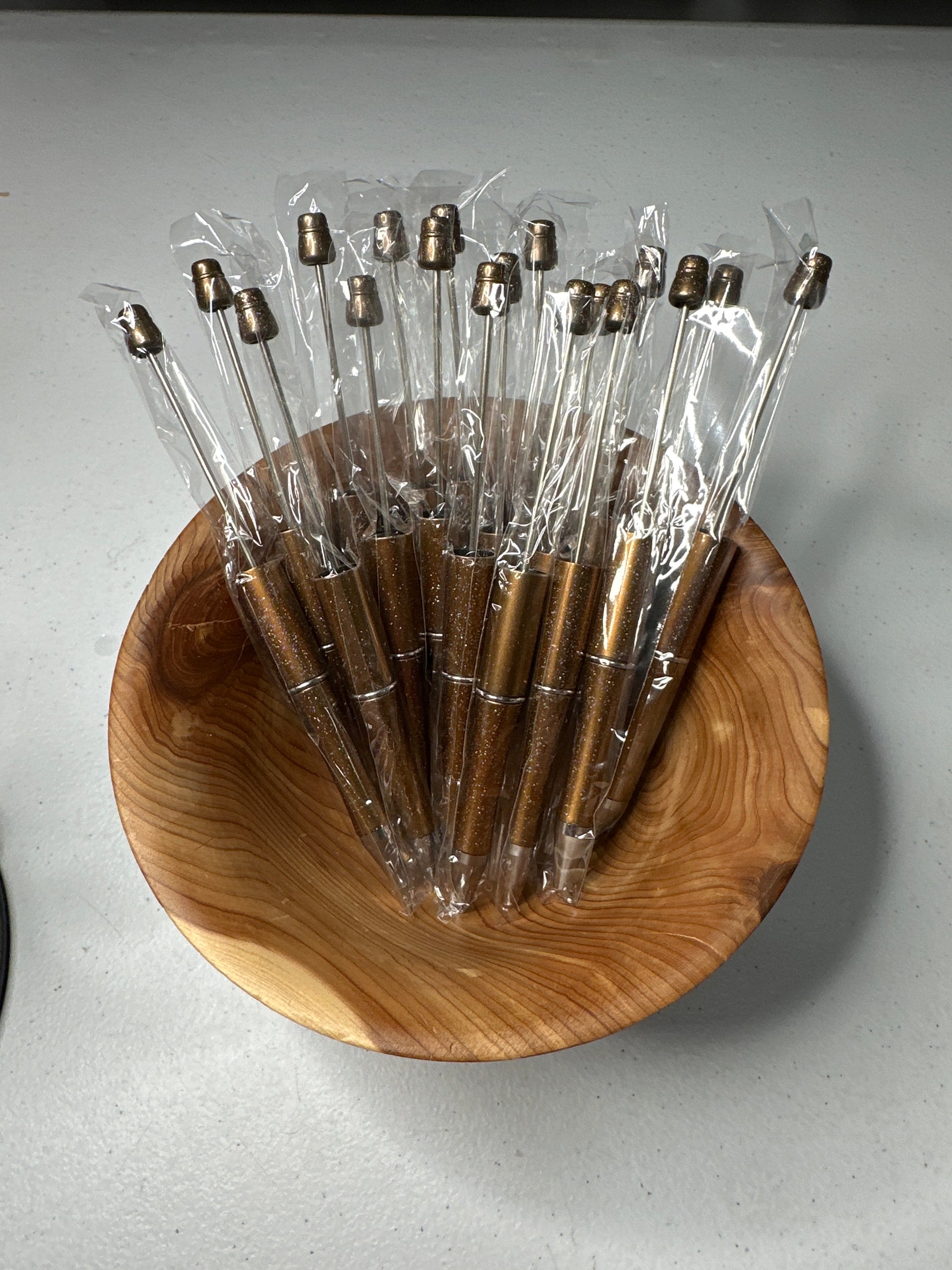These pens have a twist-to-open base with a ballpoint tip. The writing is smooth like butter. They are available in variety colors. Each base comes with one ink insert, and additional ink inserts can be purchase from us.