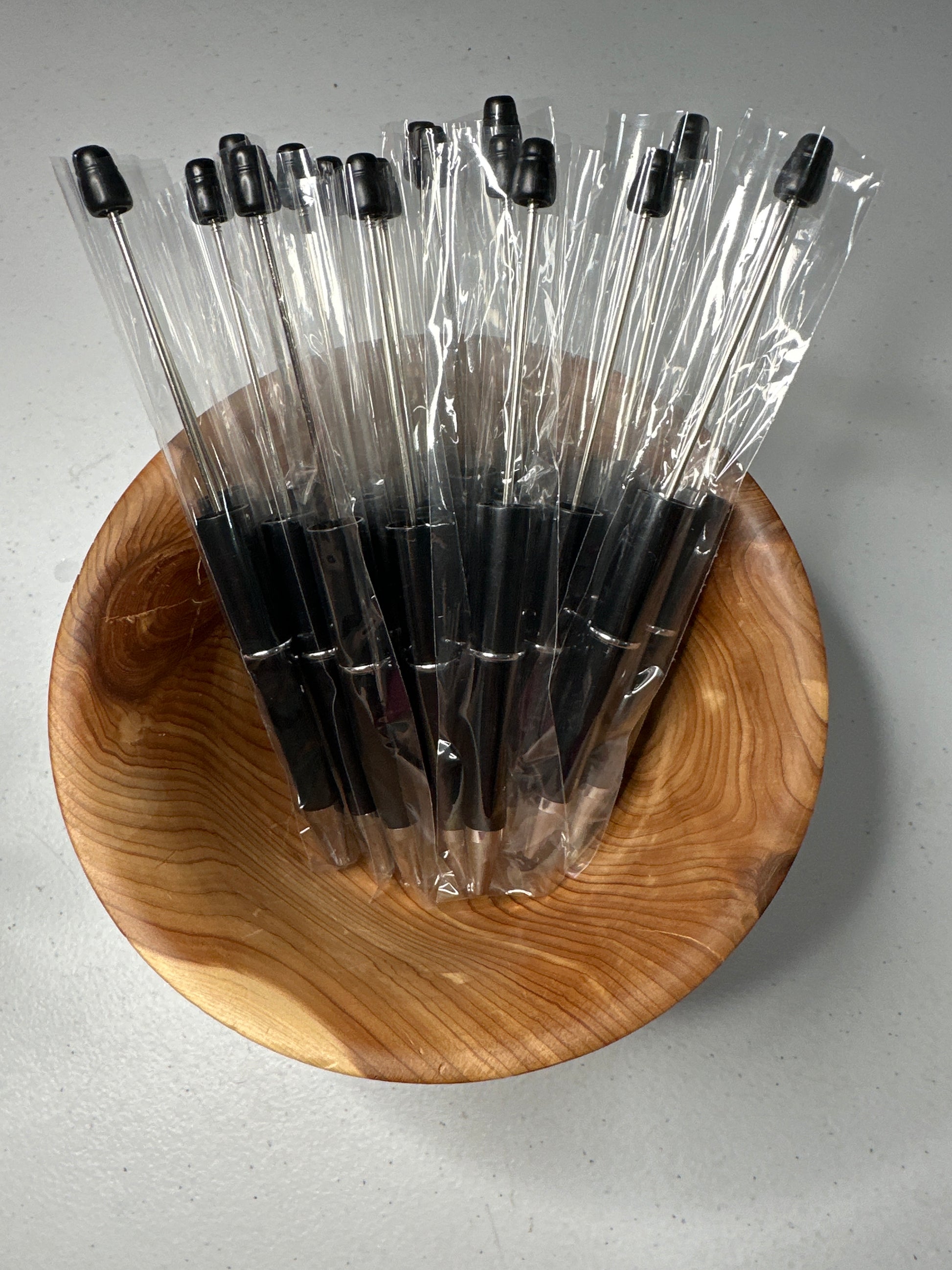 These pens have a twist-to-open base with a ballpoint tip. The writing is smooth like butter. They are available in variety colors. Each base comes with one ink insert, and additional ink inserts can be purchase from us.