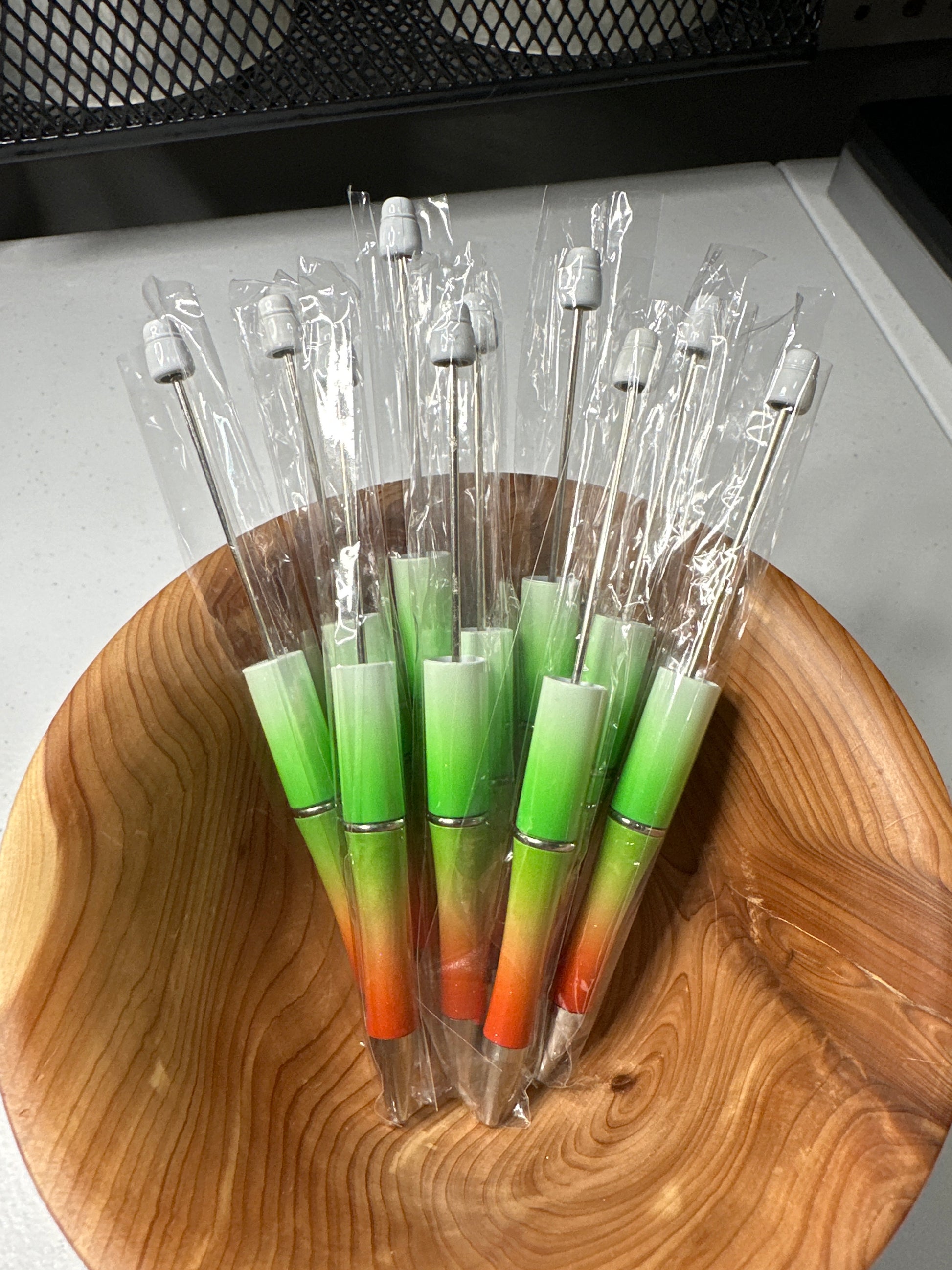 These pens have a twist-to-open base with a ballpoint tip. The writing is smooth like butter. They are available in variety colors. Each base comes with one ink insert, and additional ink inserts can be purchase from us.
