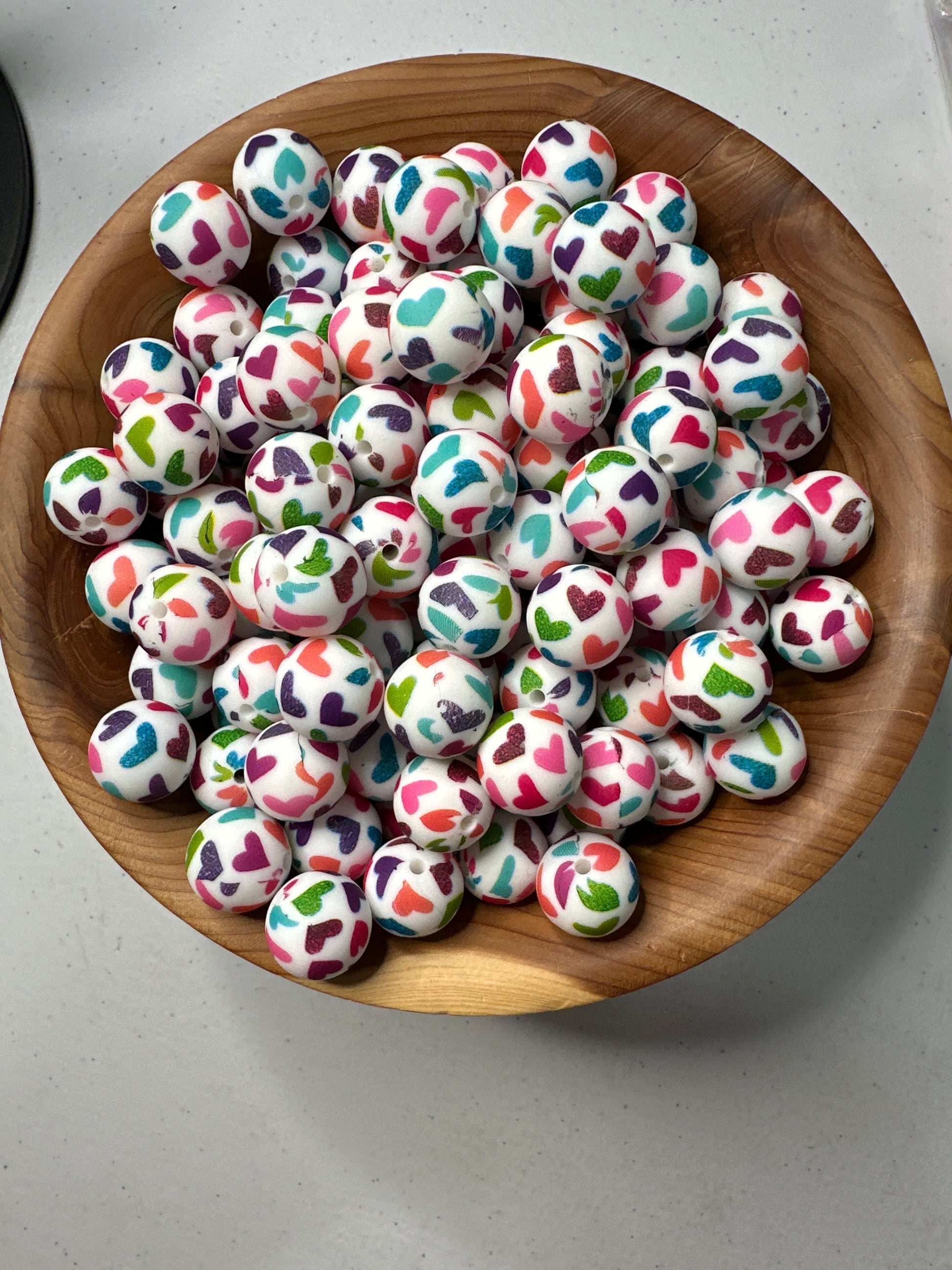#104 Pattern Silicone Bead 15MM - HEART MULTICOLOR