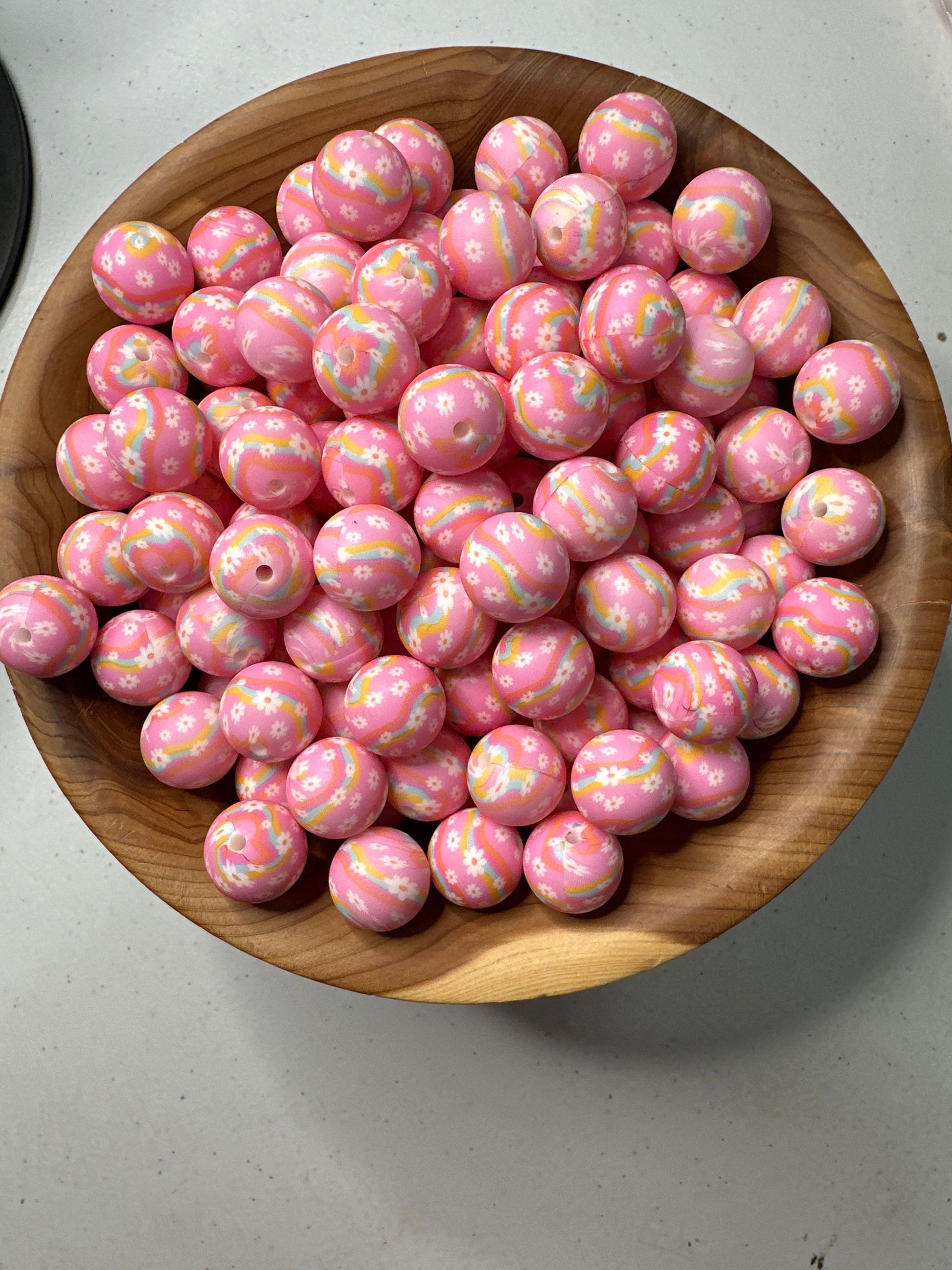 #121 Pattern Silicone Bead 15MM - PINK DAISEYS