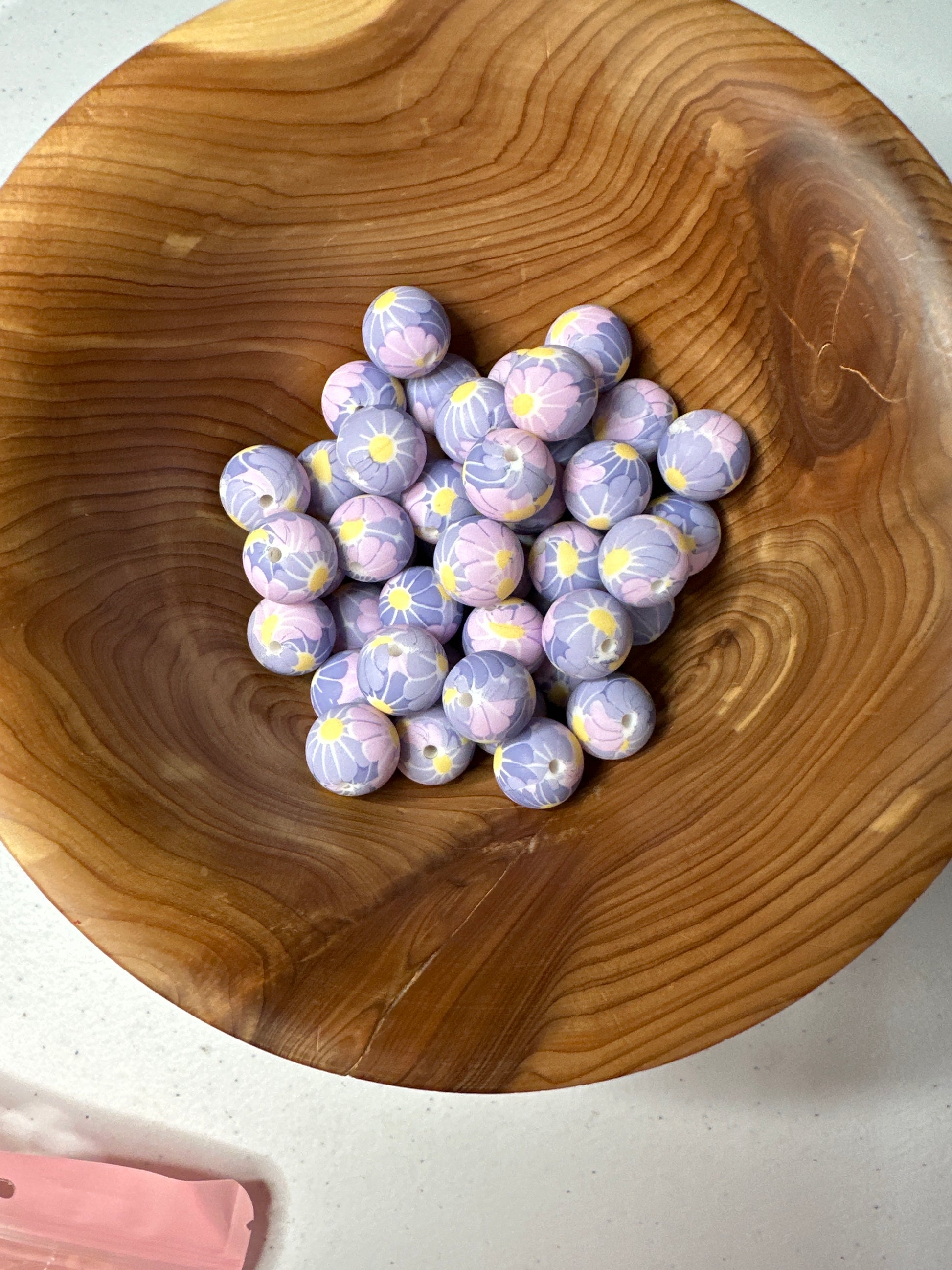 #123 Pattern Silicone Bead 15MM - PURPLE FLOWER