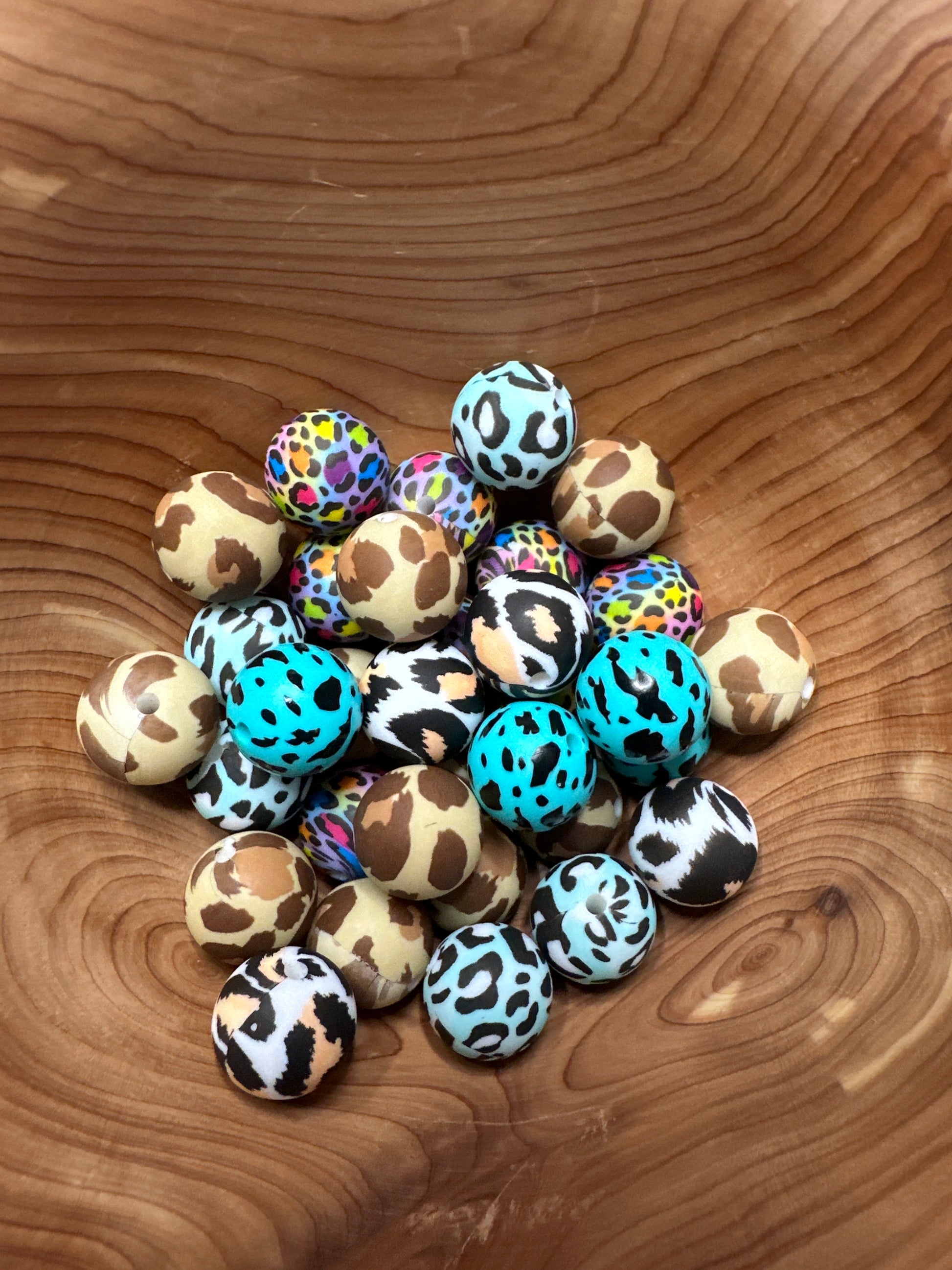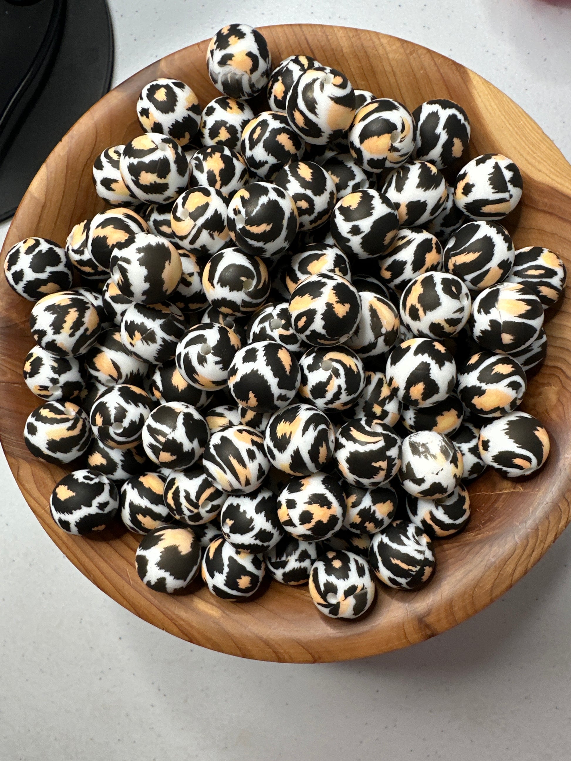 #100 Pattern Silicone Bead 15MM - CHEETAH