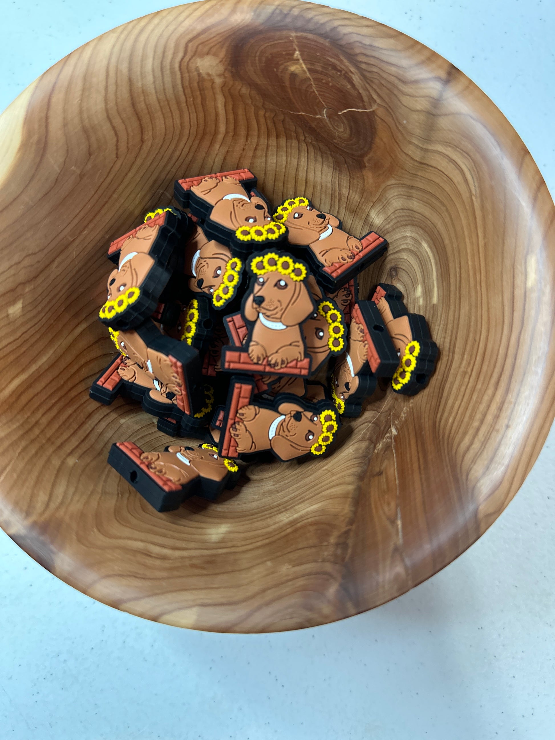 #148 Silicone Focal Beads - DOG BROWN WITH FLOWERS