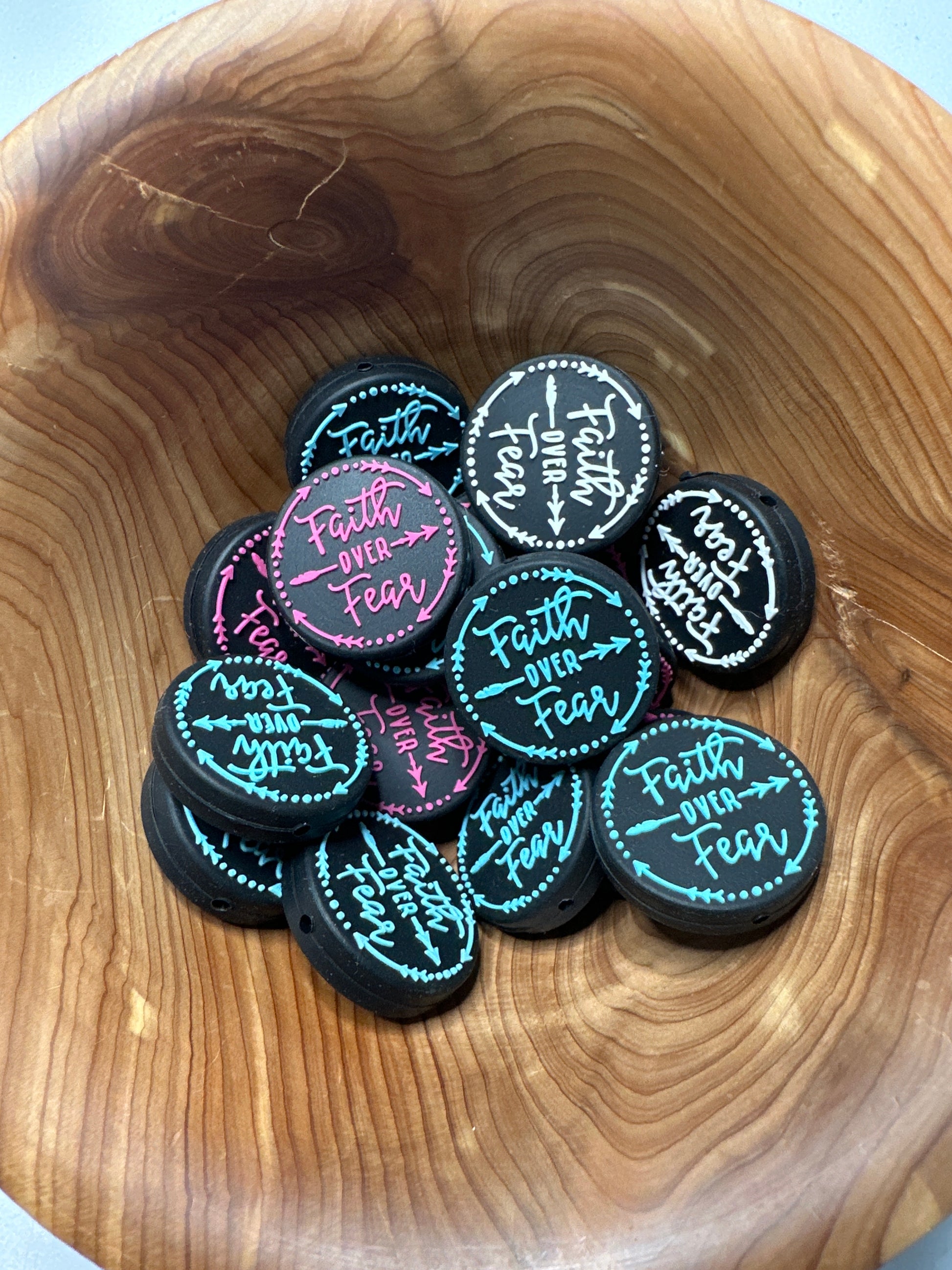#152 Silicone Focal Beads - FAITH OVER FEAR CIRCLE